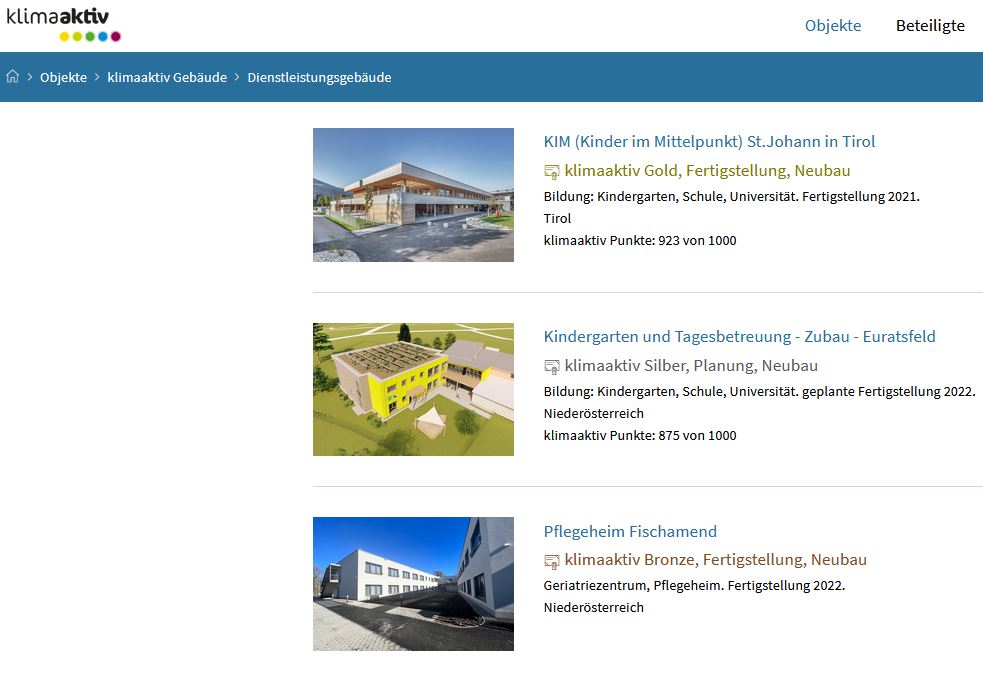 Gute Beispiele für Schulen und Kindergärten mit einer Komfortlüftung finden sie auf klimaaktiv-gebaut - Dienstleitungsgebäude